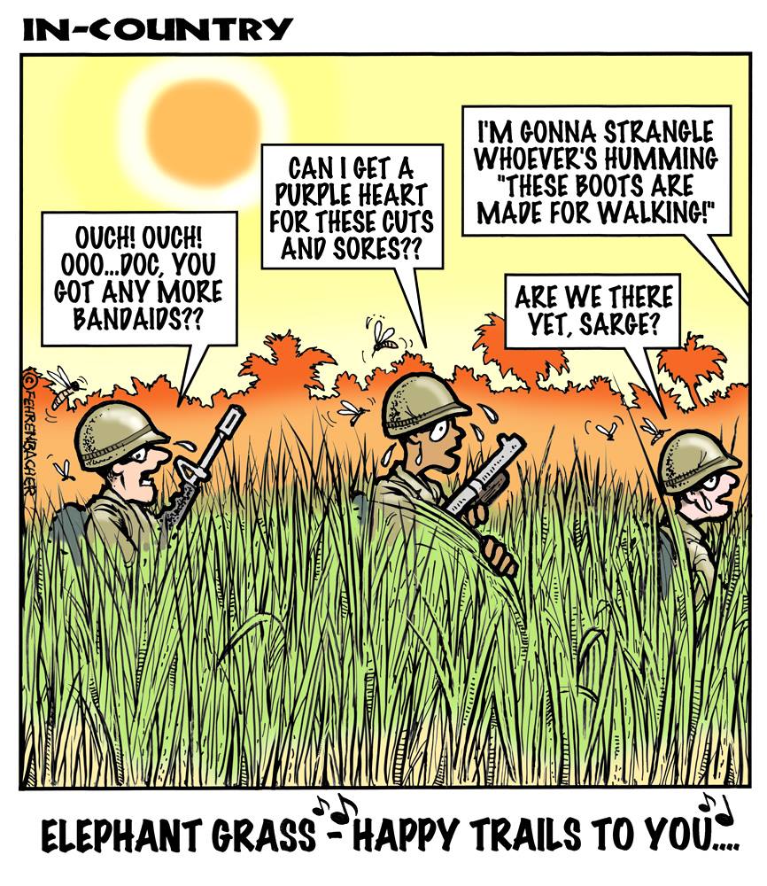 Phil enlisted in the Army in 1965 where you served for years in Vietnam.  He became a graphic designer and has worked for the state of Oregon for 26 years.  He retired in 2003 and started the Cartoon "In-Country".  The cartoons reflect his experiences during his tour of duty in South Vietnam.